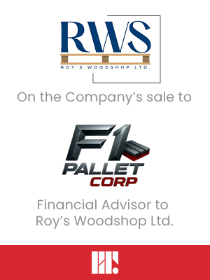Redcap&Truss is pleased to announce that it advised Roy’s Woodshop Ltd. (“Roy’s” or the “Company”) on the Company’s sale to F1 Pallet Corp. Roy’s, based in Medicine Hat, has been in business for over 30 years, becoming Southern Alberta’s leading manufacturer of wood pallets and custom wood crates.